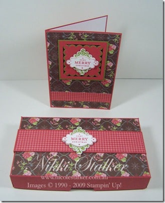 These may look familiar to you as they are the same box I made back in October for my father’s birthday but this time of course they are made using Christmas papers and I’ve coordinated the cards to match. Notice the scallop edge medallions again…. I so love this.