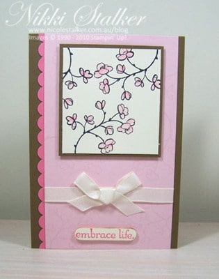 The main image has also been stamped randomly over the Pink Pirouette cardstock using Versamark ink but I’m not sure you can see it in the picture.