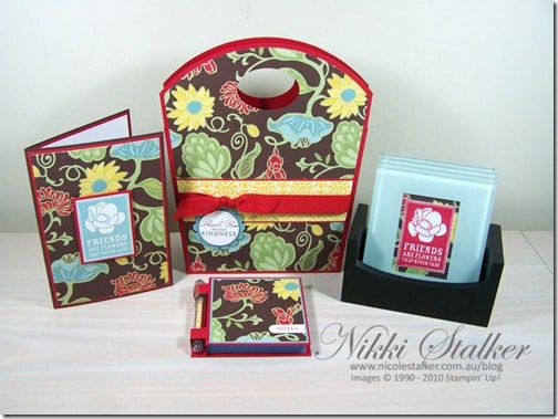 Beautiful tote, matching card and post-it note holder. I love the coasters. Great work.