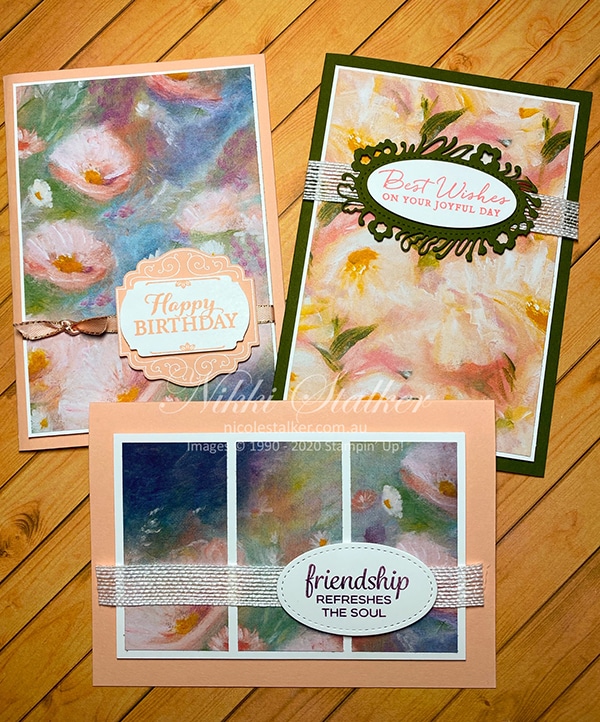 The stamp sets used on these ones are (from top left going clockwise) – Layered With Kindness, Path of Petals & Beautifully Braided.