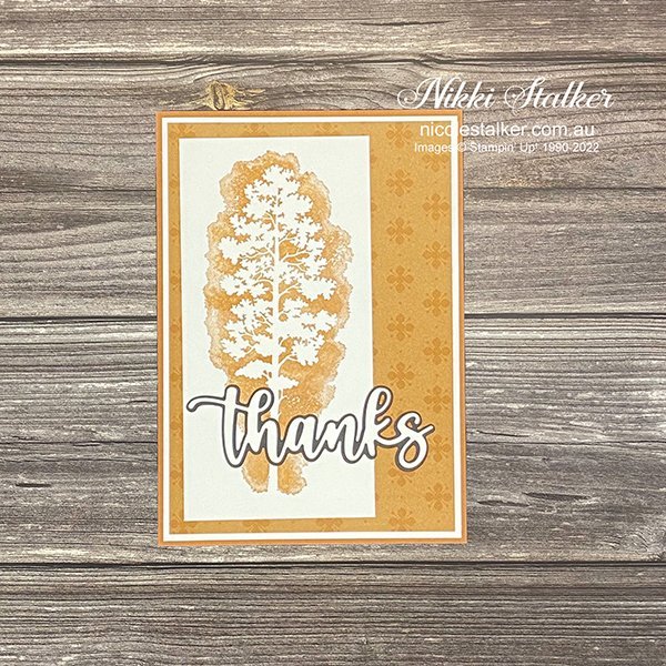 Next up, I stamped the tree image onto a piece of Basic White cardstock in the matching In Color before adhering to the card front.